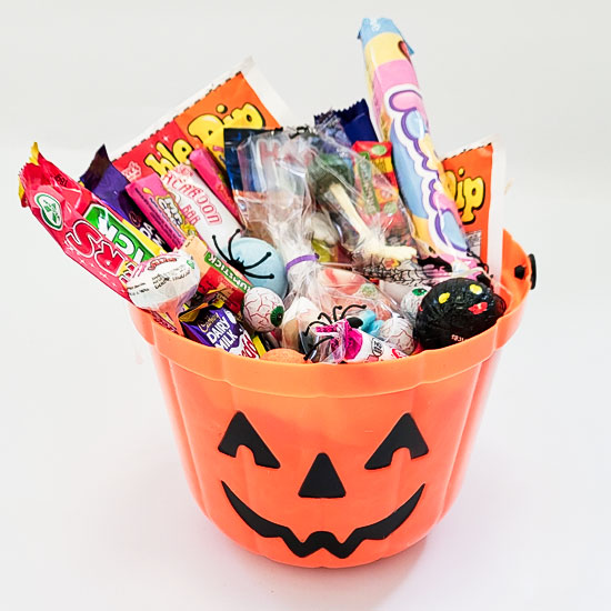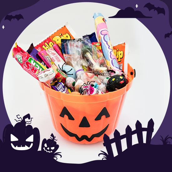Super Scary Halloween Treat Bucket – a yummy array of quality chocolate and sweets in a Halloween themed bucket that can be used over and over